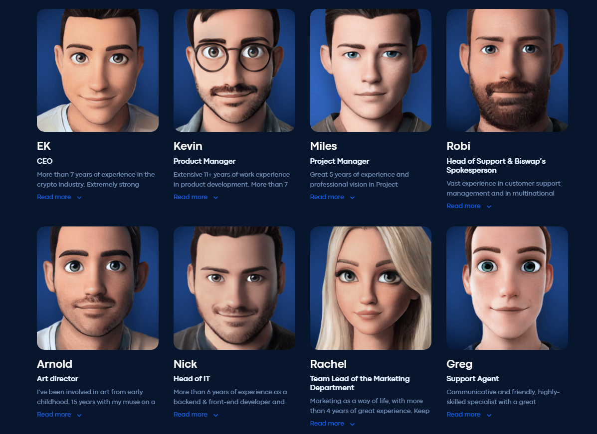 Đội ngũ Biswap tại thời điểm viết bài đang rơi vào khoảng 27 thành viên. Các nhân sự trải dài từ ban quản trị, lập trình viên, marketing cho đến designers và cả những người hỗ trợ.