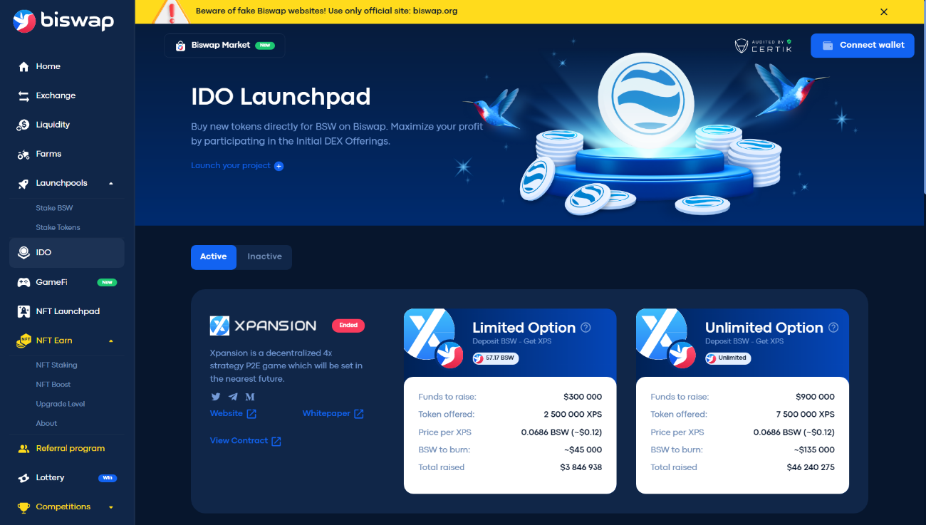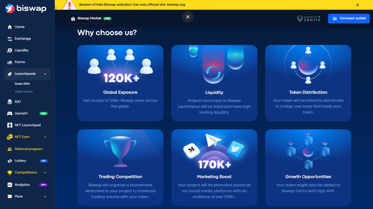 Biswap còn là một launchpad cho phép các dự án kêu gọi vốn từ cộng đồng.