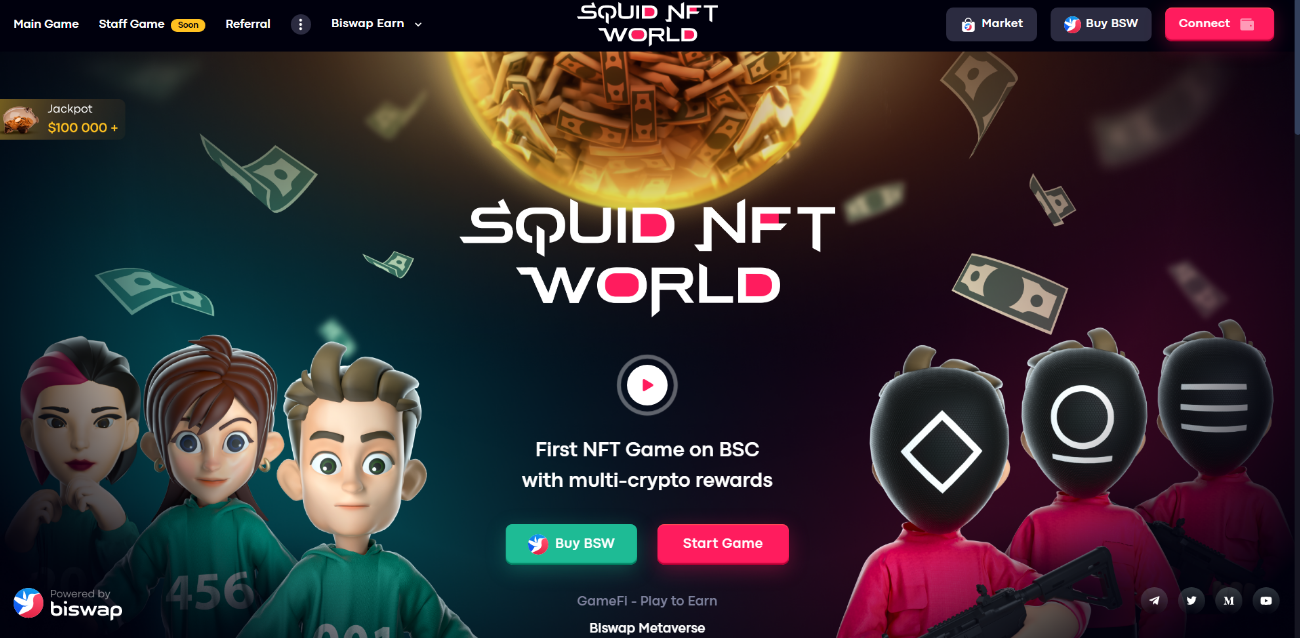 - GameFi: Biswap cũng sở hữu riêng cho mình một dự án game nhỏ lấy cảm hứng từ Squid Game để tạo các game thu hút người chơi và cũng để tăng use case cho BSW.