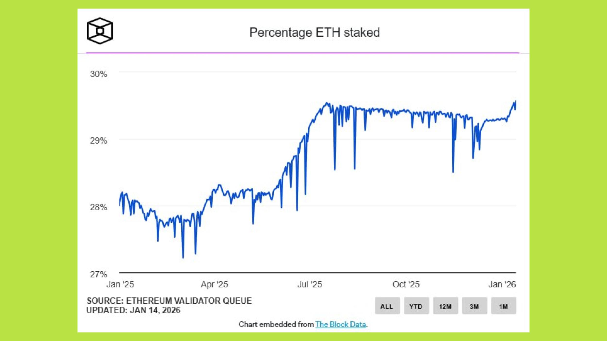 Chiến lược của Bitmine không dừng lại ở việc tích lũy. Công ty đặt mục tiêu dài hạn nâng lượng nắm giữ lên khoảng 5% tổng cung ETH, tương đương gần 6 triệu ETH, qua đó củng cố vị thế như một “kho bạc Ethereum” mang tính chiến lược. Song song với quá trình tích lũy, Bitmine đẩy mạnh việc đưa ETH vào staking nhằm giảm lượng tài sản nhàn rỗi và tạo ra dòng thu nhập định kỳ.