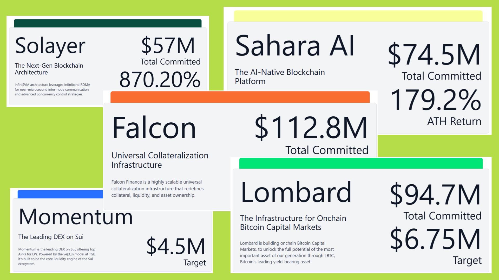 - Sahara AI (SAHARA): Một dự án blockchain AI layer-1. Mục tiêu huy động ~8.5 triệu USD nhưng số vốn thực tế gọi thành công lớn hơn (~74.5 triệu USD) vượt hơn 8-9 lần.