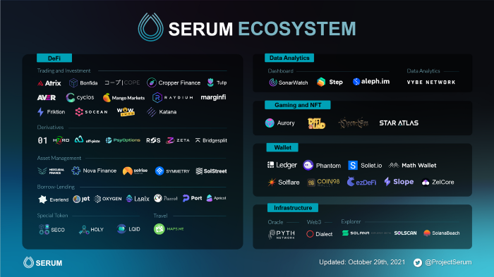 Danh sách này không đầy đủ nhưng hy vọng cho các bạn thấy được một số dự án thú vị đang xây dựng trên hệ sinh thái Serum.