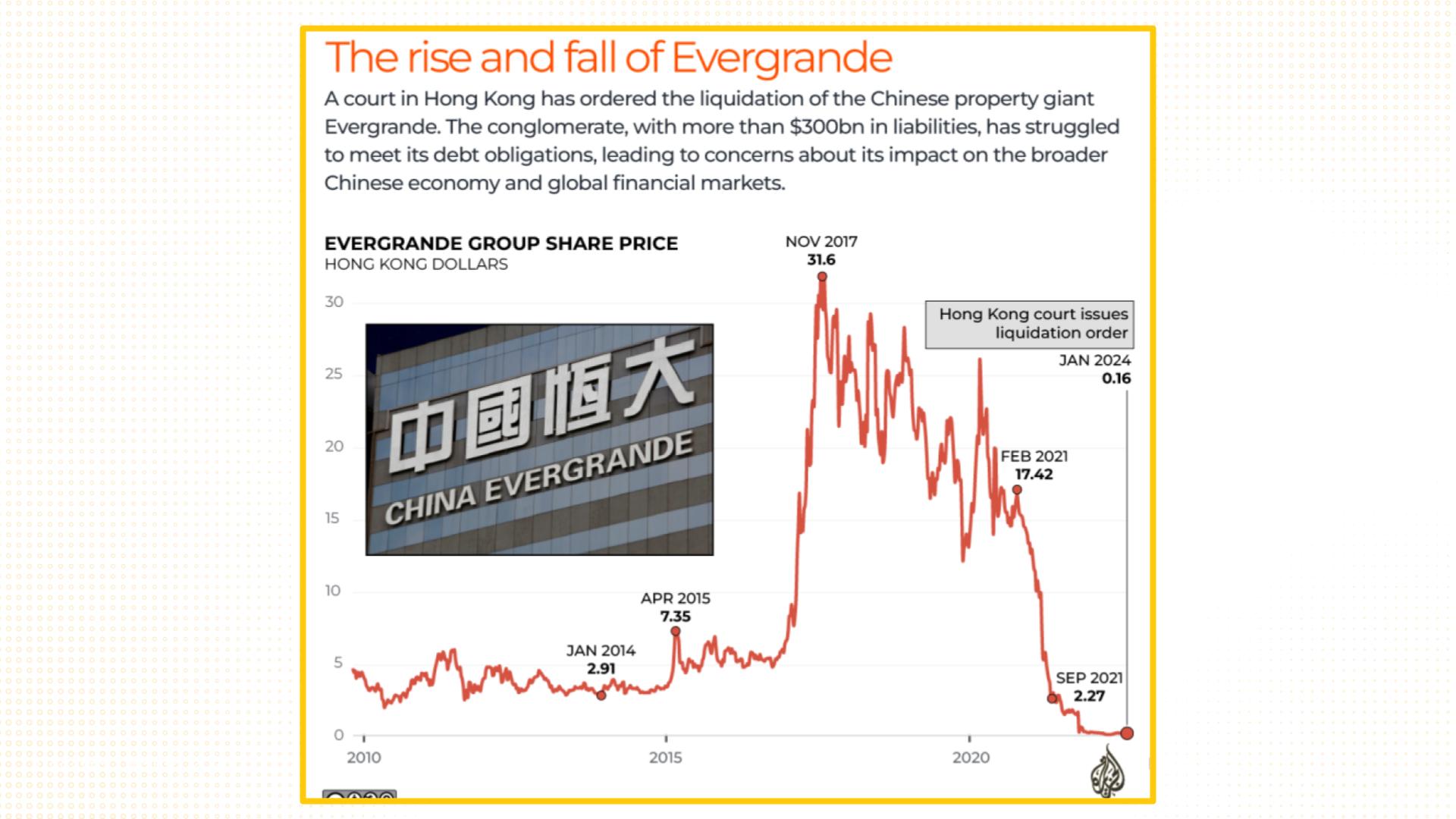 Tập đoàn Evergrande (một trong những biểu tượng bất động sản Trung Quốc) đã chính thức phá sản vì không thể tái cấu trúc nợ và lâm vào khủng hoảng thanh khoản kéo dài.
