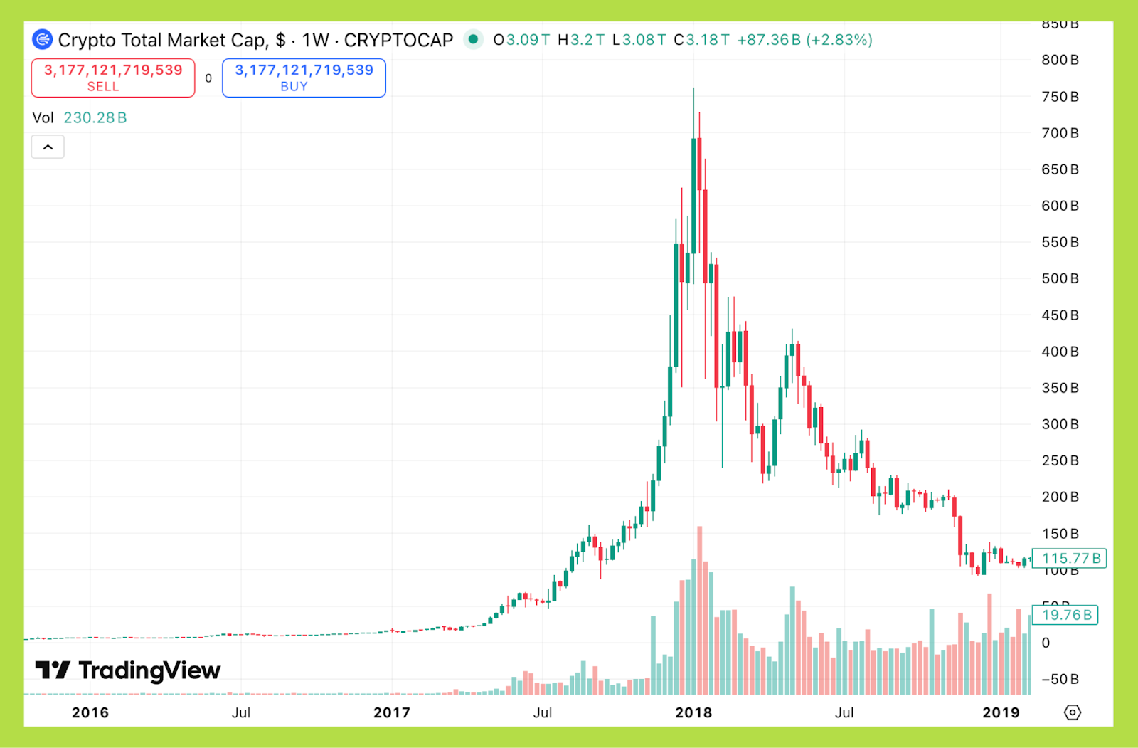 Chu kỳ 4 năm từng hoạt động hiệu quả vì bối cảnh thị trường khi đó cho phép. Giai đoạn 2012-2016, vốn hóa toàn thị trường crypto chỉ ở mức vài tỷ đến vài chục tỷ USD; ngay cả tại đỉnh 2017-2018, tổng vốn hóa cũng chỉ khoảng 830 tỷ USD - nhỏ hơn vốn hóa của một số cổ phiếu công nghệ lớn hiện nay.