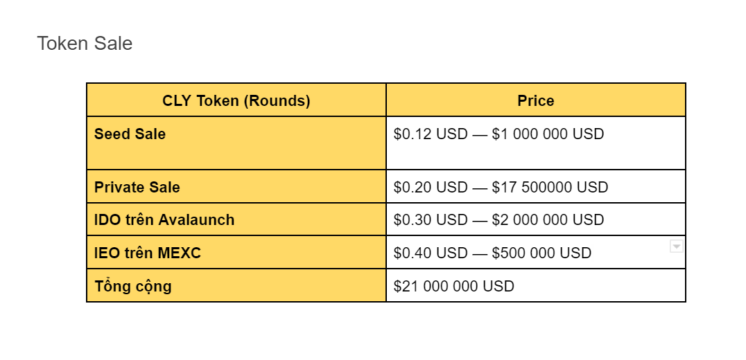 CLY Token Sale