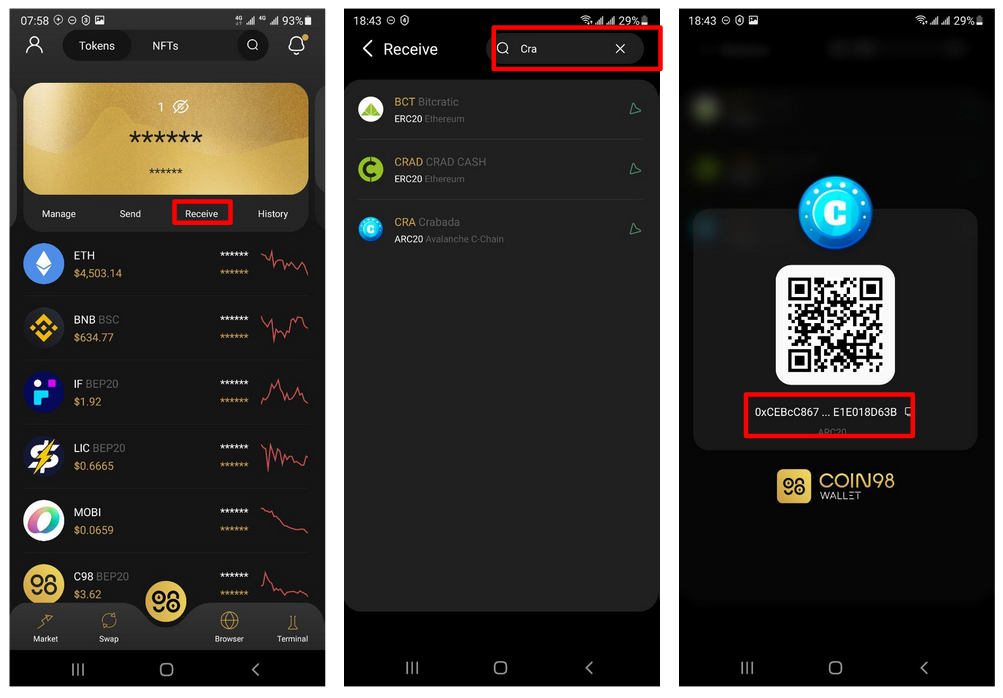 CRA là token thuộc Avalanche, nên sẽ được lưu trữ trên Coin98 Wallet theo các bước sau: