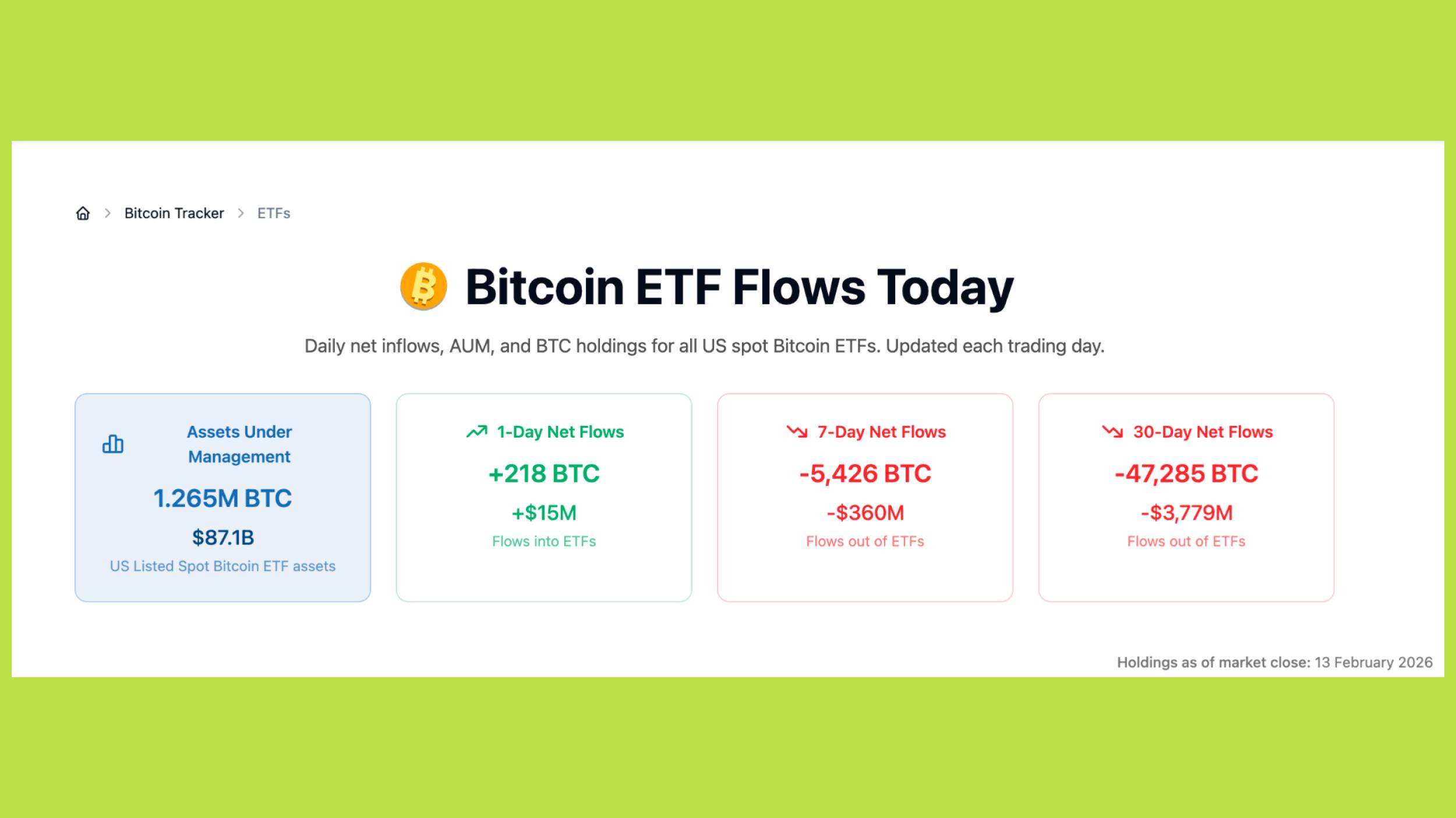 Dòng tiền tổ chức không phản ánh đầy đủ sức khỏe của toàn thị trường. Trong khi phần lớn altcoin suy yếu kéo dài, Bitcoin và một số tài sản lớn vẫn được nâng đỡ bởi các cấu trúc ETF. Tuy nhiên, dữ liệu gần đây cho thấy ngay cả lớp “nâng đỡ” này cũng đang suy yếu, khi dòng vốn bắt đầu rút ra trong 7 và 30 ngày gần nhất.
