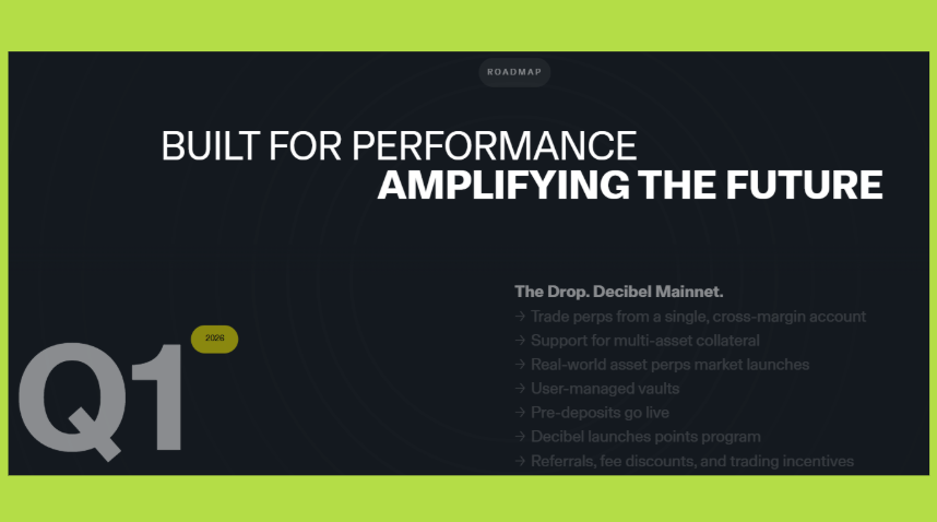 Q1/2026 - Mainnet: Đây là mốc trọng tâm khi Decibel dự kiến ra mắt Mainnet chính thức, với việc hỗ trợ giao dịch perps từ tài khoản cross-margin duy nhất, multi-asset collateral, các thị trường phái sinh dựa trên tài sản thực (RWA), vault do người dùng quản lý và chương trình khuyến khích người dùng đầy đủ với referral, điểm thưởng, giảm phí và ưu đãi giao dịch.