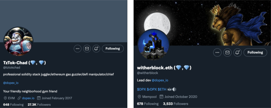 Đội ngũ phát triển của Dopex hầu hết là đội ngũ của Anon như TzTok-Chad & witherblock.eth.