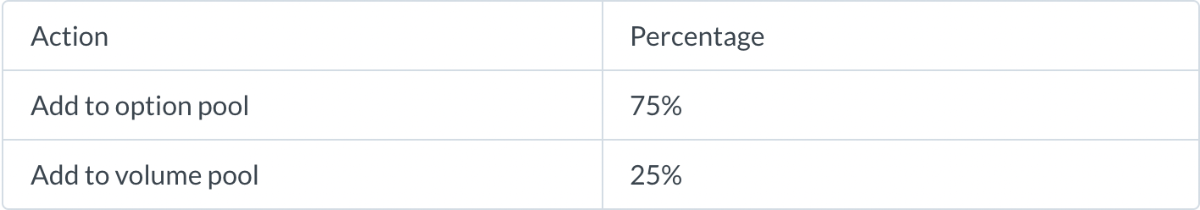 - Action rewards (phần thưởng các hành động khác): Phân phối cho người góp phần tạo thanh khoản vào Option pool hoặc volume pool.