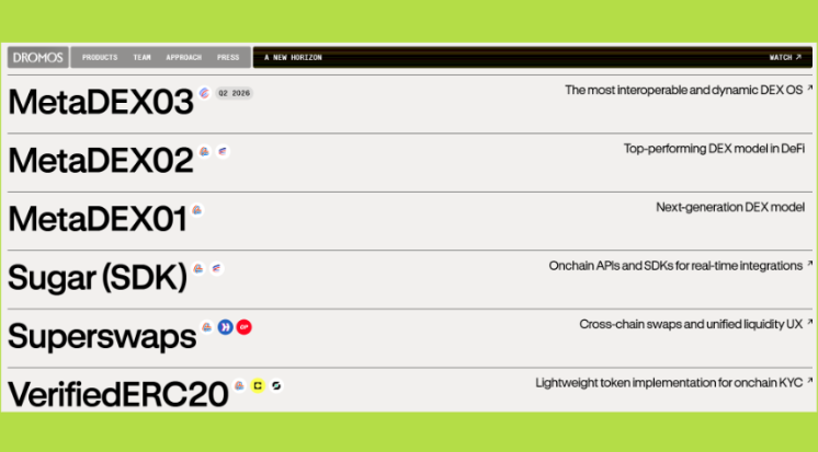 Nền tảng của Dromos là công nghệ MetaDEX, một kiến trúc DEX gắn kết hiệu suất công nghệ với cơ chế kinh tế để tạo ra hệ thống DEX bền vững và có thể mở rộng. Nhiệm vụ cốt lõi của Dromos là thiết kế và cung cấp các giao thức, công cụ và hệ thống cho phép thanh khoản tập trung, giao dịch xuyên chuỗi và khuyến khích sự tham gia của người dùng thông qua phần thưởng và quyền quản trị.