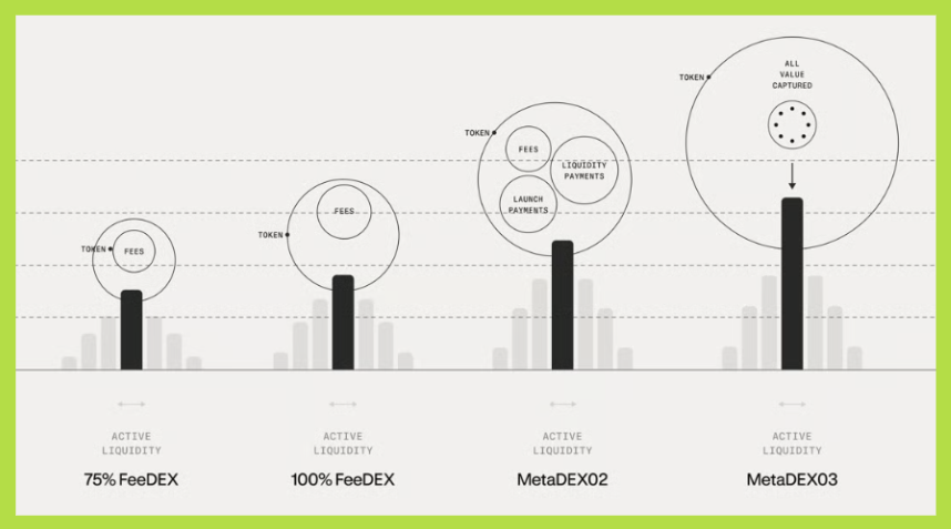 MetaDEX 03 tích hợp các engine quản lý phát thải và doanh thu riêng biệt, cho phép giao thức cân bằng giữa tăng trưởng và tính bền vững. Đây cũng là nền tảng kỹ thuật cho Aero, DEX hợp nhất Aerodrome và Velodrome, với mục tiêu trở thành trung tâm thanh khoản liên chuỗi trong hệ sinh thái Ethereum mở rộng.