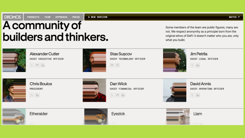 Chris Boulos, Chủ tịch Dromos Labs, chịu trách nhiệm phát triển quan hệ đối tác và cấu trúc tổ chức. Ông từng là nhà kinh tế học nghiên cứu, nhà phân tích quỹ đầu cơ và tư vấn chiến lược tại Boston Consulting Group.