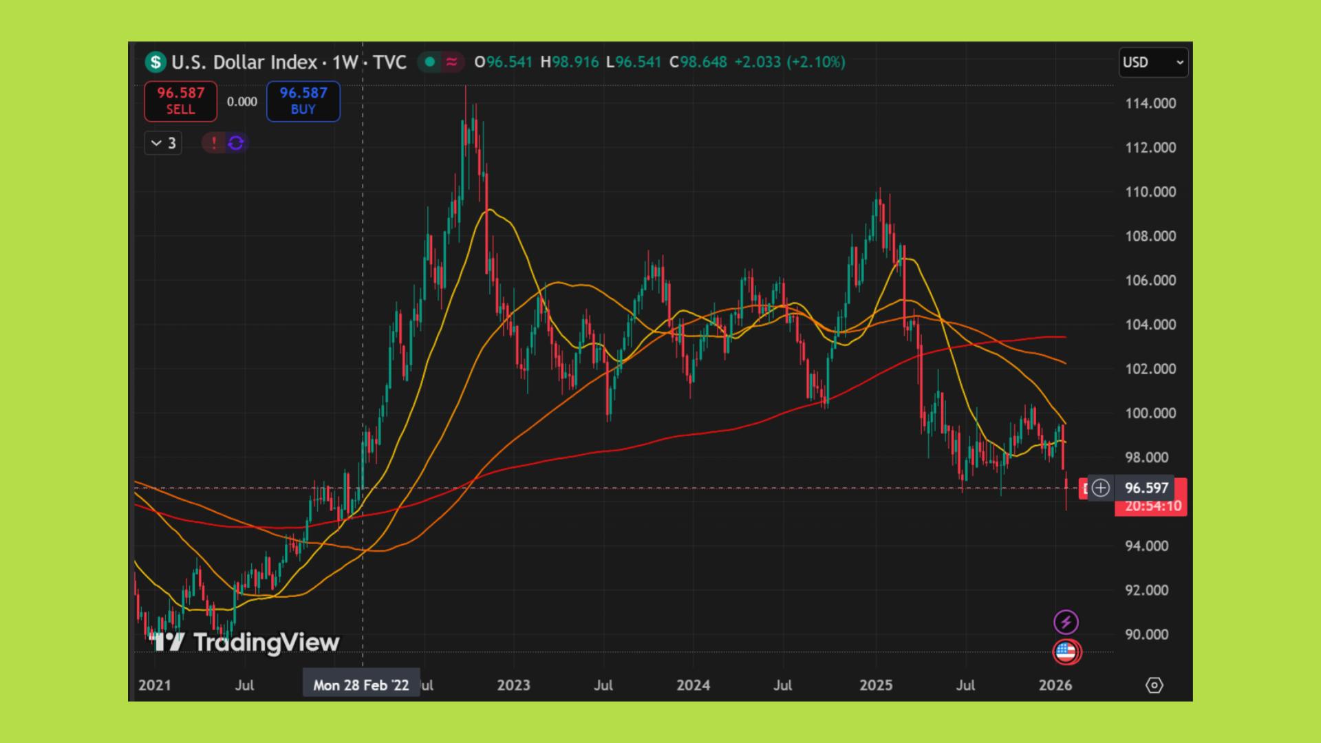 Trong nhiều thập kỷ, USD giữ vai trò trung tâm của hệ thống tài chính toàn cầu nhờ lợi thế kinh tế, thị trường vốn sâu rộng và niềm tin thể chế. Tuy nhiên, bước sang đầu năm 2026, khi Dollar Index rơi xuống mức thấp nhất trong vòng 4 năm, sự suy yếu của USD không còn đơn thuần là biến động giá.