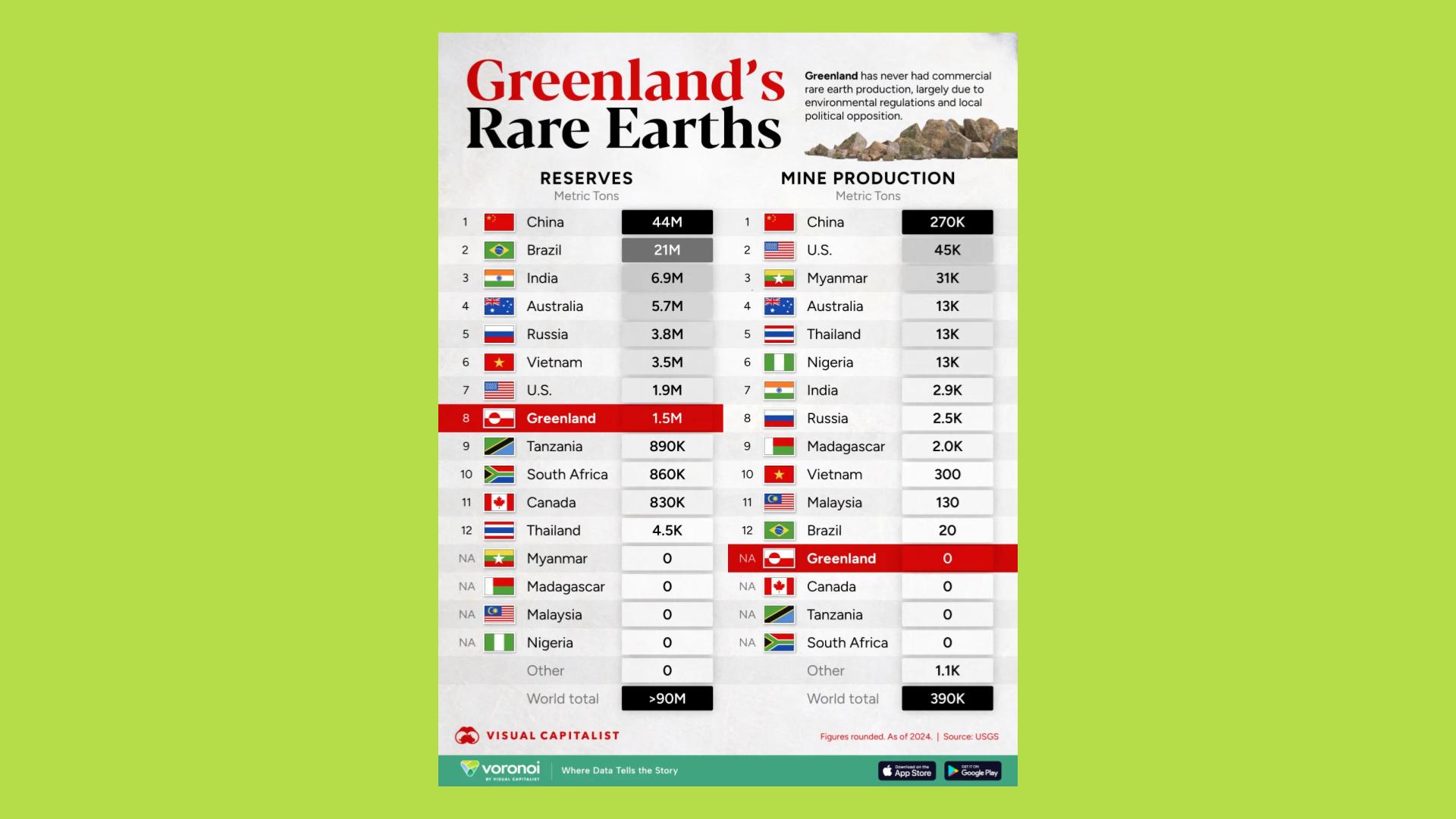 Bên cạnh đó, khu vực này còn sở hữu trữ lượng đất hiếm đáng kể với gần 1.5 triệu tấn đất hiếm, xếp hạng thứ 8 trong danh sách các quốc gia có trữ lượng đất hiếm lớn nhất thế giới. Đây cũng chính là nguồn nguyên liệu mang tính sống còn đối với các ngành công nghiệp quốc phòng và vũ khí công nghệ cao.