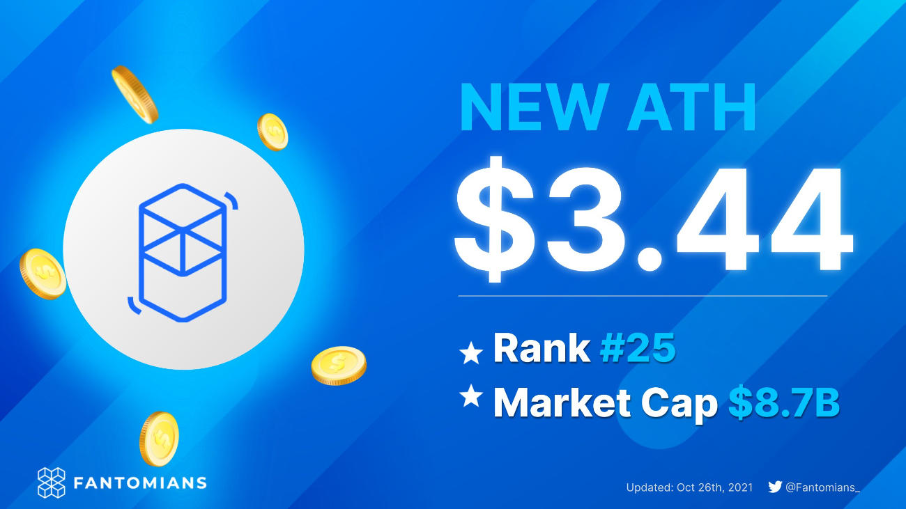 Mặc dù hồi phục chậm hơn một số hệ sinh thái như Solana, Terra, Avalanche, nhưng Fantom đã không làm cộng đồng thất vọng khi vẫn có sự hồi phục rất mạnh mẽ. Cho đến ngày 26/10/2021, Fantom đã đạt đỉnh mới với giá $3.44.