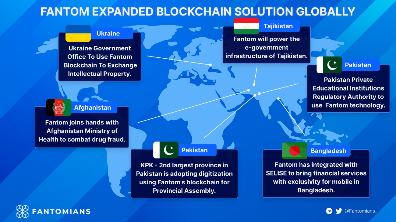 Ngoài ứng dụng trong thịn trường crypto và DeFi, Fantom còn là blockchain được ứng dụng trong các doanh nghiệp và chính phủ. Hướng đi này giúp Fantom blockchain có thể tăng sự hiện diện và ứng dụng nhiều hơn.