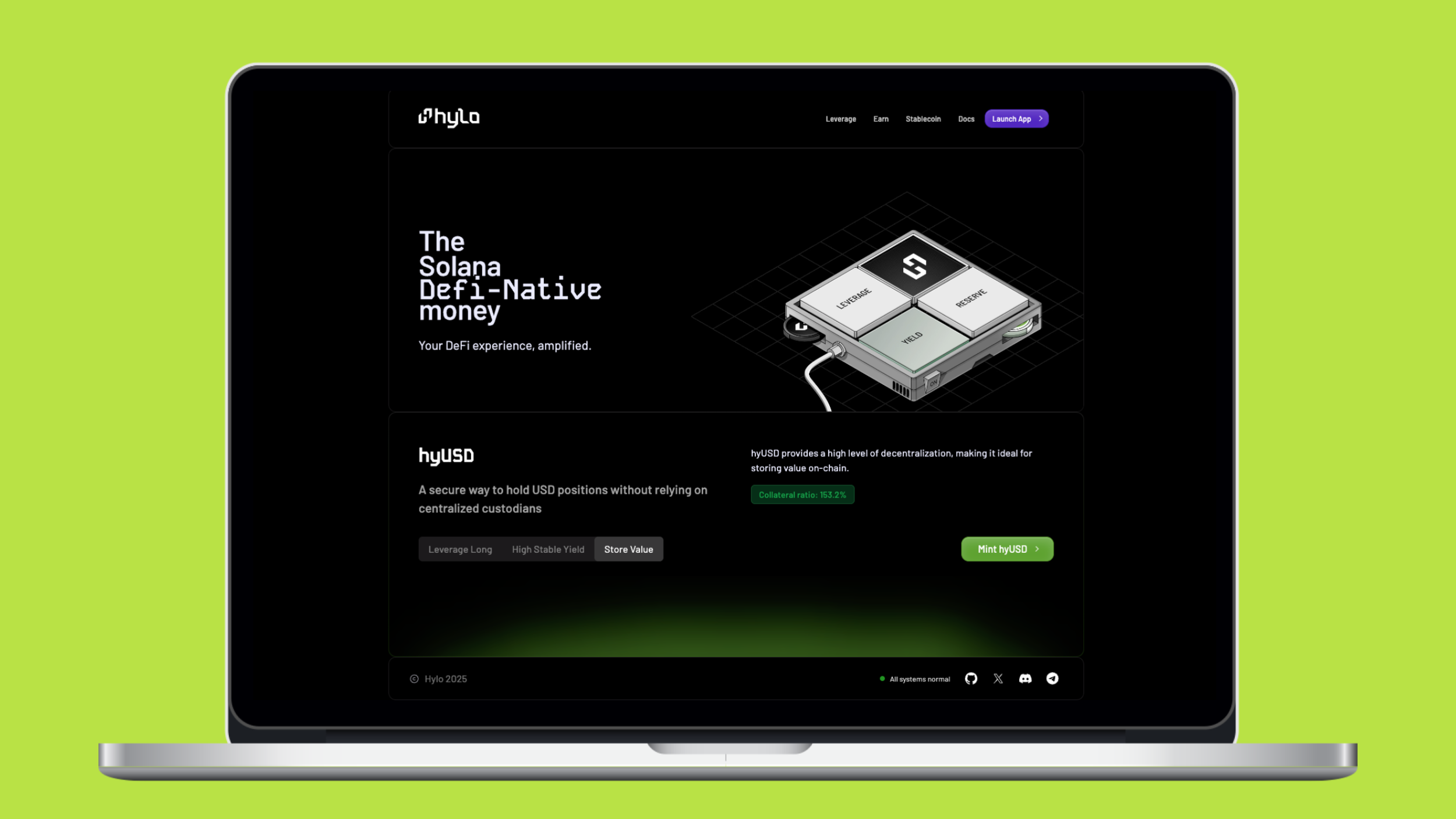 Hylo là giao thức stablecoin trên Solana cho phép người dùng tạo ra stablecoin hyUSD dựa trên tài sản thế chấp là các liquid staking token của SOL. Bên cạnh hyUSD, giao thức còn tạo ra xSOL, một dạng tài sản phản ánh vị thế đòn bẩy trên SOL được sinh ra từ quá trình thế chấp và tái đầu tư.