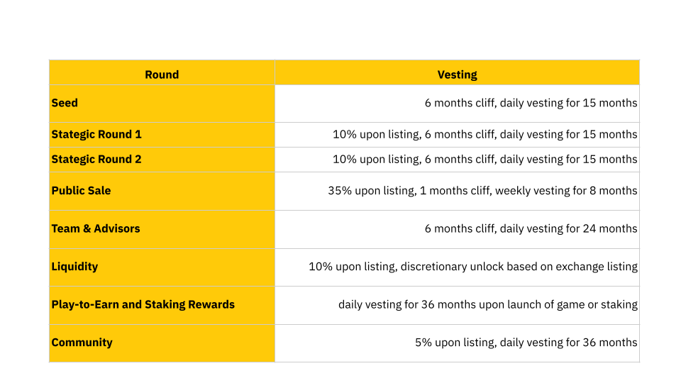 - Xây dựng Metaverse với chất lượng AAA, đội ngũ thiết kế và phát triển trò chơi giàu kinh nghiệm, mang đến trò chơi không chỉ kiếm tiền (play–to-earn) mà còn là giải trí (fun-to-play).