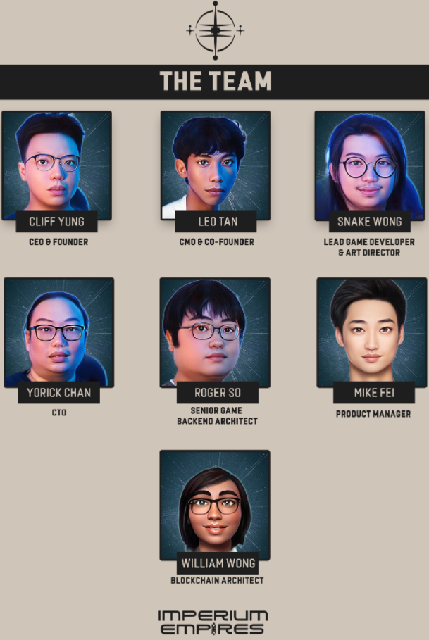 Team dự án gồm nhiều thành viên có kinh nghiệm trong việc xây dựng gaming và blockchain, bạn có thể tham khảo đội ngũ của Imperium Empires qua hình sau.