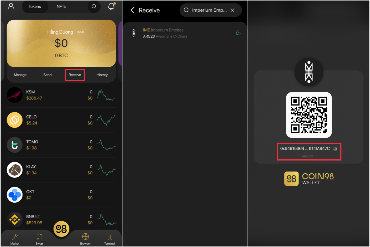 IME token là ARC-20 token, bạn có thể lưu trữ trên Coin98 Wallet với thao tác đơn giản sau: