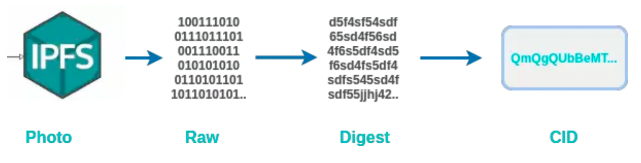 Đầu tiên mọi dữ liệu sẽ được mã hoá và được lưu dưới dạng mã hash (còn gọi là đối tượng IPFS). Ý tưởng chủ đạo là nếu trình duyệt của bạn muốn truy cập một trang nào đó trên IPFS thì chỉ cần đưa ra mã hash rồi mạng sẽ tìm máy có lưu trữ dữ liệu khớp với mã hash và sau đó tải dữ liệu, trang đó về từ máy tính đấy về cho bạn.