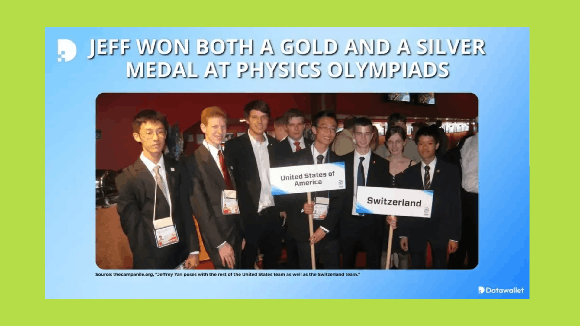 Trước khi trở thành một tên tuổi trong ngành crypto, Jeff Yan đã là một gương mặt nổi bật trong cộng đồng toán học. Từng đạt huy chương tại kỳ thi Toán học Hoa Kỳ (USAMO), Jeff sở hữu khả năng tư duy định lượng ở mức độ thượng thừa.