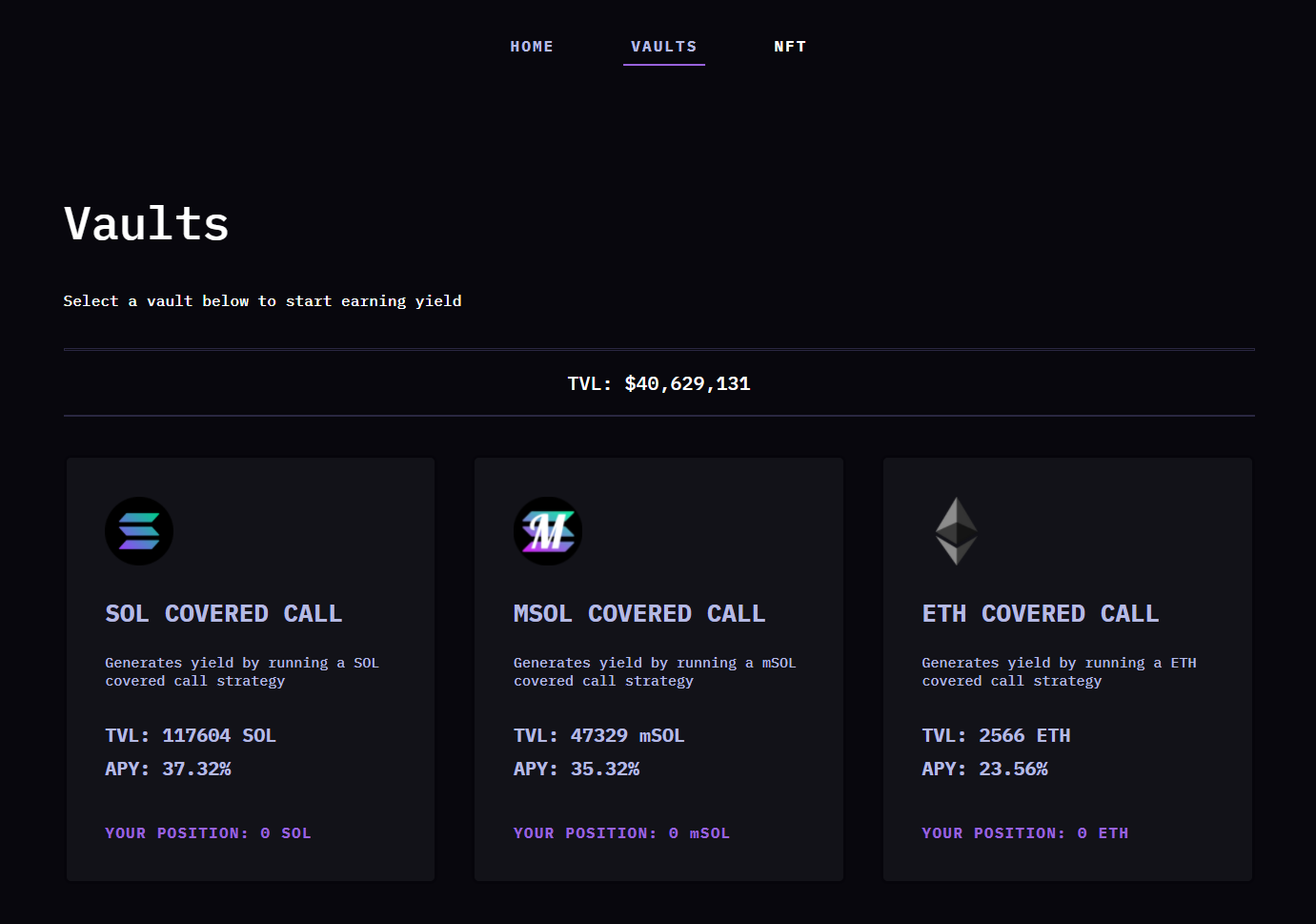 Dự án cung cấp các Vaults tương đương với các loại tài sản và các chiến lược khác nhau để thu về lợi nhuận. Hiện tại tất cả các chiến lược của các Vaults này đều là DOVs (DeFi Options Vaults).