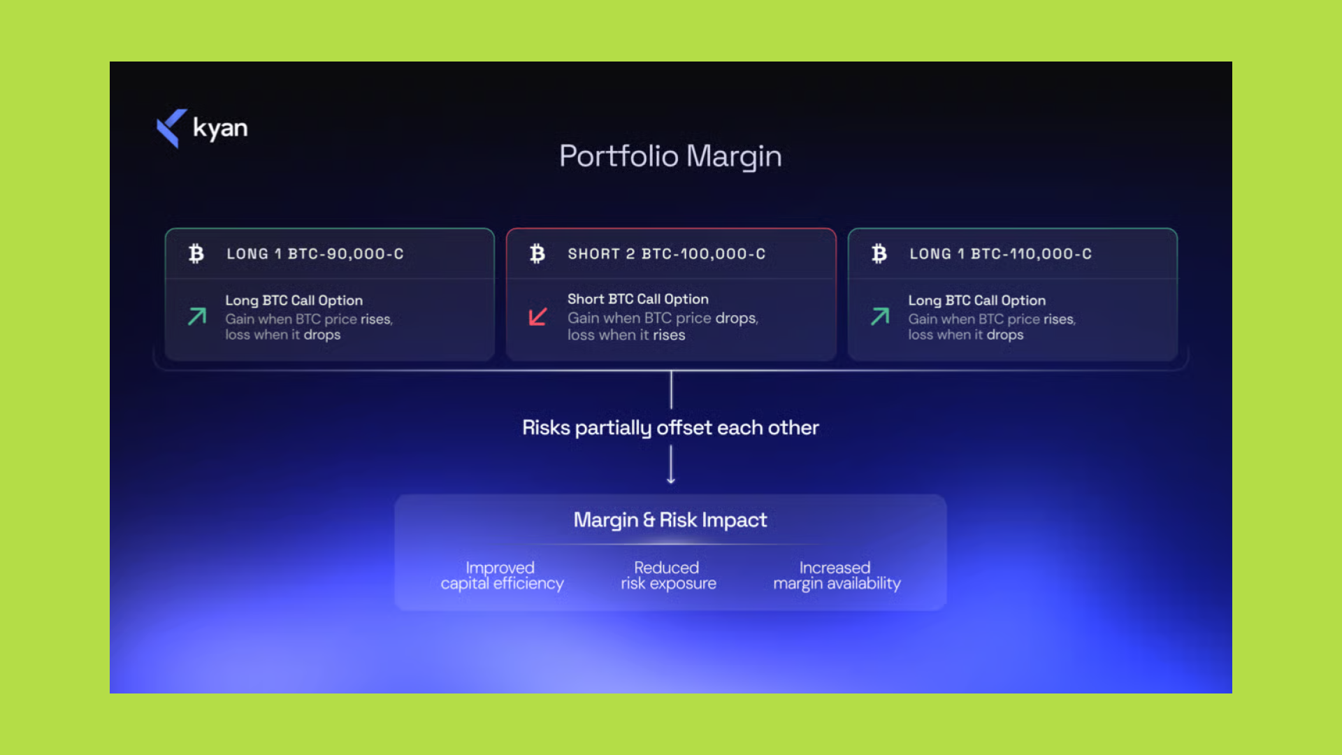Thay vì áp dụng mô hình Isolated Margin truyền thống vốn tính toán ký quỹ tách biệt cho từng vị thế đơn lẻ, hệ thống của Kyan thực hiện đánh giá rủi ro dựa trên tổng thể danh mục đầu tư của người dùng. Cách tiếp cận này cho phép các vị thế có tính chất đối ứng tự bù trừ rủi ro cho nhau.