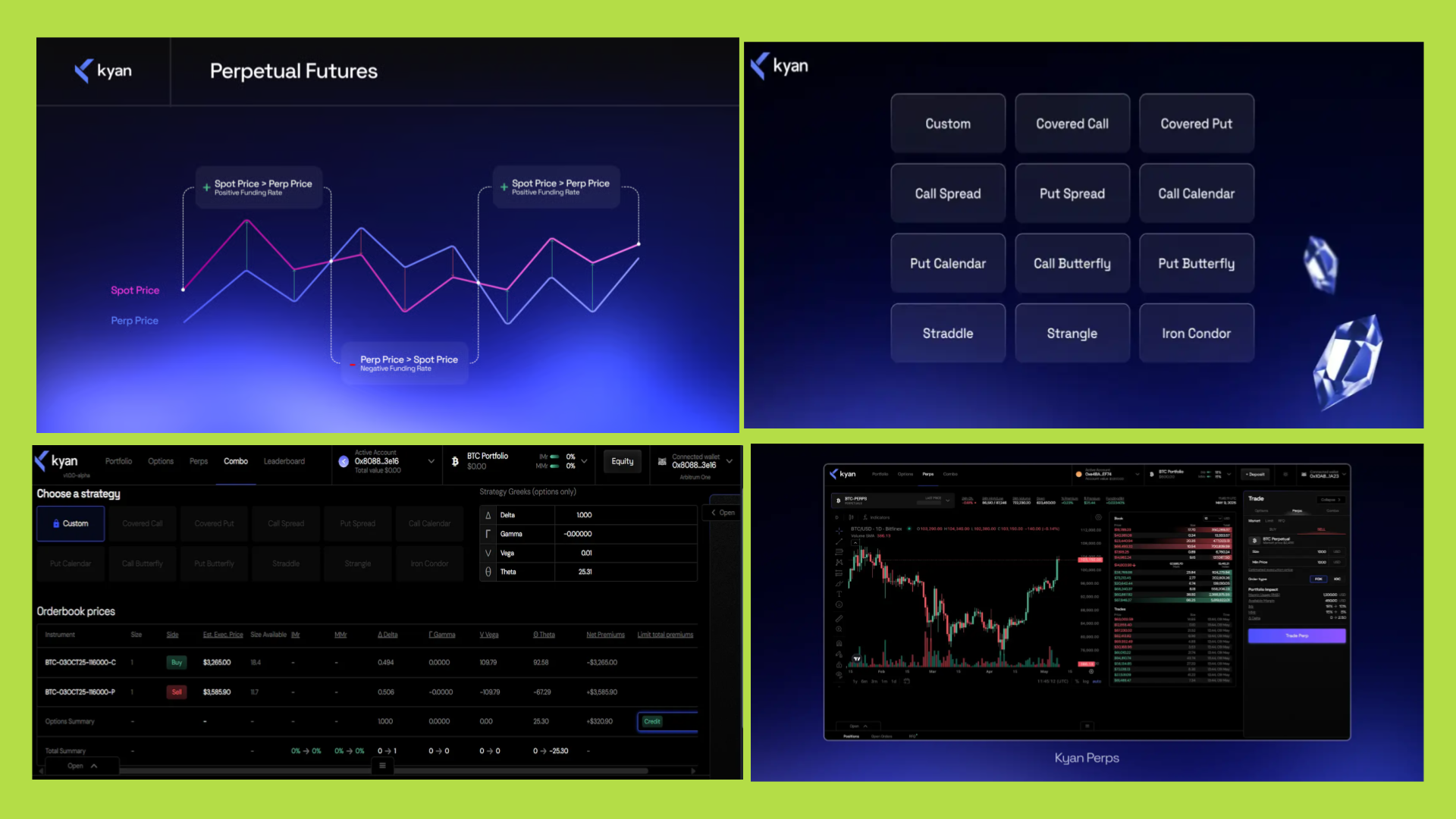 Kyan hỗ trợ song song hai sản phẩm tài chính quan trọng nhất trong mảng phái sinh: Hợp đồng quyền chọn và Hợp đồng tương lai vĩnh cửu.