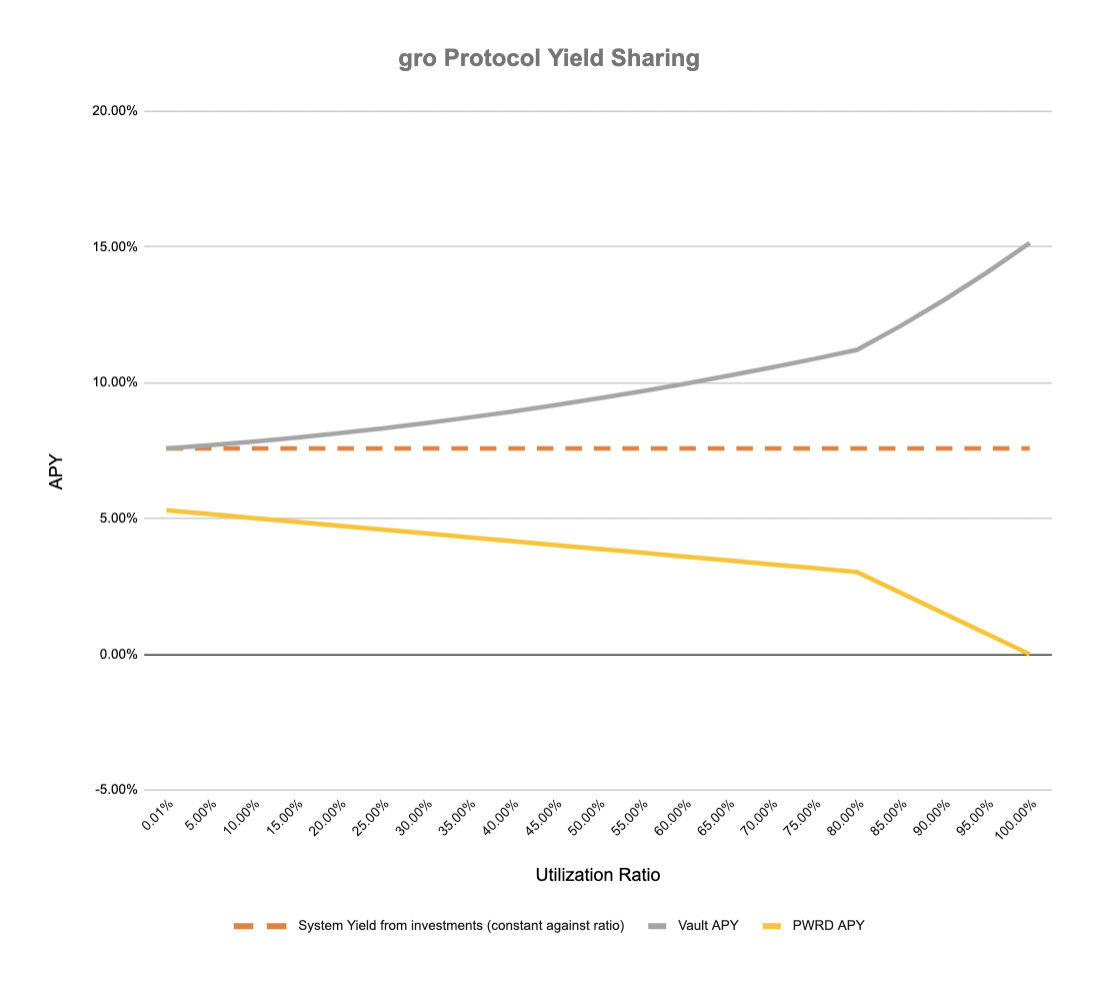 Hiện tại, tỉ lệ hiệu dụng trên Gro Protocol đang là 71%, mức APY của Vault và PWRD tương ứng là 11.6% và 4.2%.