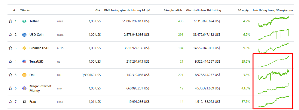 Trong thời gian qua, nhiều stablecoin cũng sự tăng trưởng nhanh như MIM, FRAX, UST... vốn hóa tăng nhanh lên vài tỉ USD. Điểm chung của các stablecoin này là điều có các chương trình Incentives thu hút các nhà đầu tư. Do đó, sự tăng trưởng của stablecoin cho thấy stablecoin đang là 1 nguồn yield tốt trong thị trường ảm đạm như hiện nay.