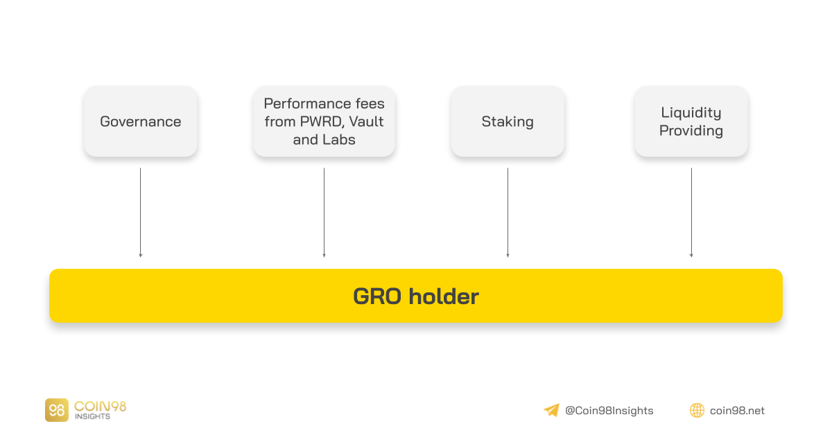 GRO là native token của Gro Protocol nên có vai trò rất quan trọng trong nền tảng. Hiện tại GRO có vai trò: