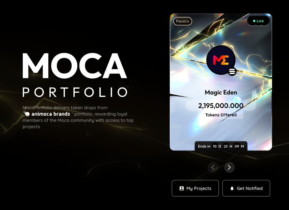 Token mở màn cho MocaPortfolio là ME - token tiện ích và quản trị của Magic Eden, một trong những nền tảng NFT lớn đang hoạt động trên Solana, Bitcoin và các mạng EVM. Theo công bố từ dự án, tổng cộng 2,195,000 ME được phân bổ trong đợt này.