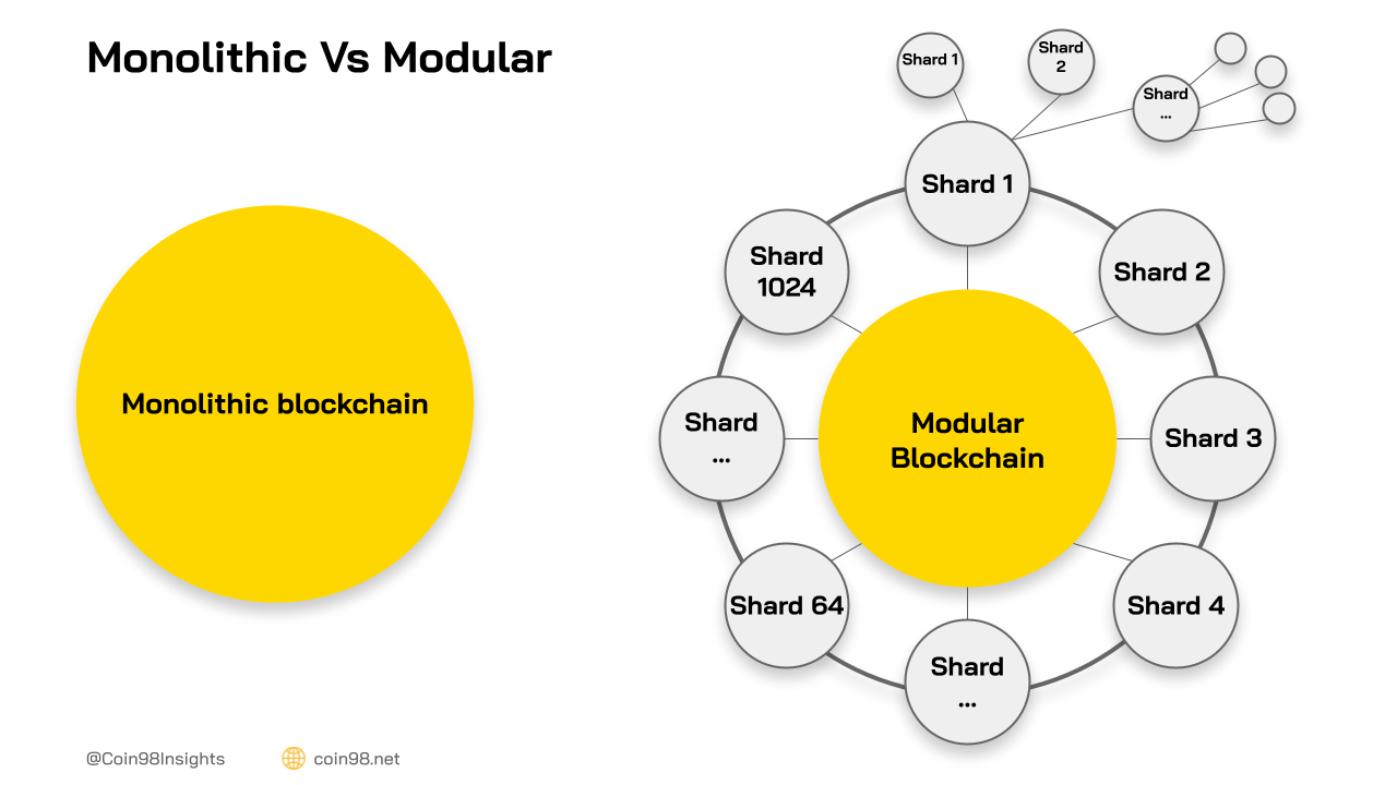 Coin98 Insights đã có 1 bài viết phân tích rõ hơn về Modular Blockchain, bạn đọc có thể tham khảo tại đây.