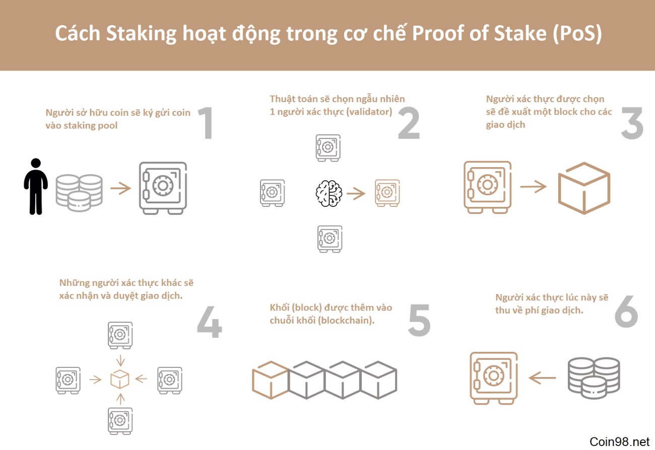 Thay vì việc phải sử dụng những phần cứng đắt tiền và tốn kém trong cơ chế đồng thuận PoW, PoS cho phép người dùng ký gửi (stake) một lượng tài sản nhất định để trở thành Validator (người xác thực) của Blockchain.