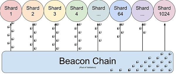 Ethereum trong giai đoạn đầu tiên của Sharding sẽ có 64 shards, tuy nhiên mỗi shards sẽ nhỏ hơn 3 lần so với layer 1 hiện tại nhưng chúng vẫn sẽ có thể xử lý khối dữ liệu gấp 18 lần so với hiện tại. Trong tương lai mục tiêu mà Ethereum hướng tới với sự phát triển của phần cứng hỗ trợ là 1024 shards.