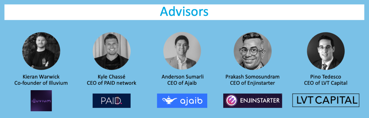 PathDAO đã tập hợp được cho mình một đội ngũ cố vấn mạnh mẽ và có kinh nghiệm thực tế trong việc tạo ra sản phẩm. Nổi bật trong số này là Kieran Warwick - co-founder của Illuvium, Kyle Chassé - CEO của PAID network và Prakash Somosundram - CEO của nền tảng launchpad Enjinstarter.