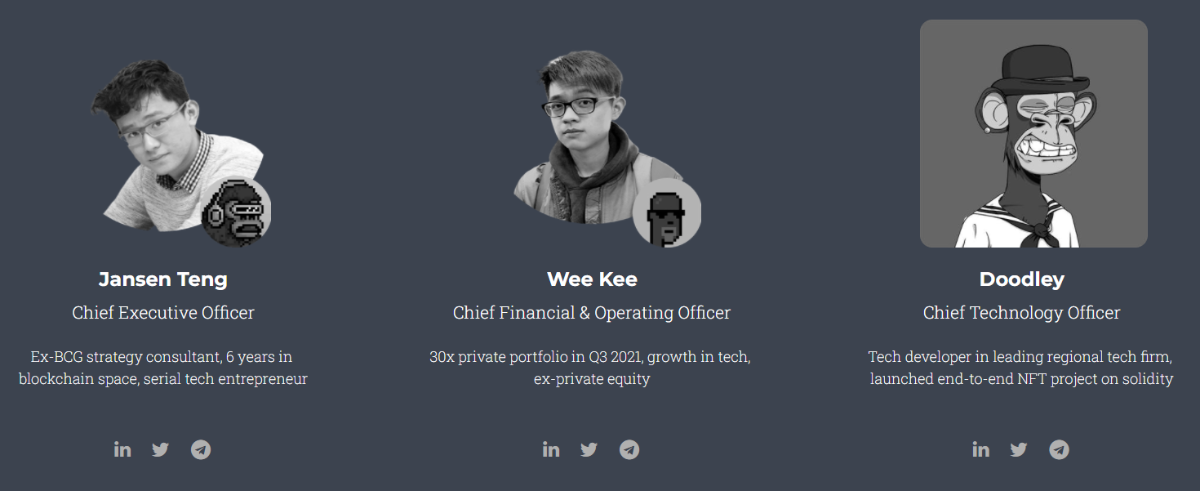 - Q1 2022: Xây dựng và phát triển các dịch vụ xoay quanh công ty đầu tư. Một số kế hoạch dự kiến bao gồm: xây dựng mạng lưới, xây dựng cộng đồng, xây dựng hành lang pháp lý, thiết kế tokenomics và kiểm toán smart contract.