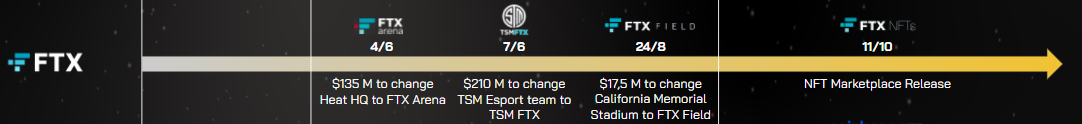 - Ngày 04/06, chi 135 triệu để đổi tên sân nhà của đội tuyển bóng rổ Miami Heat thành FTX Arena.