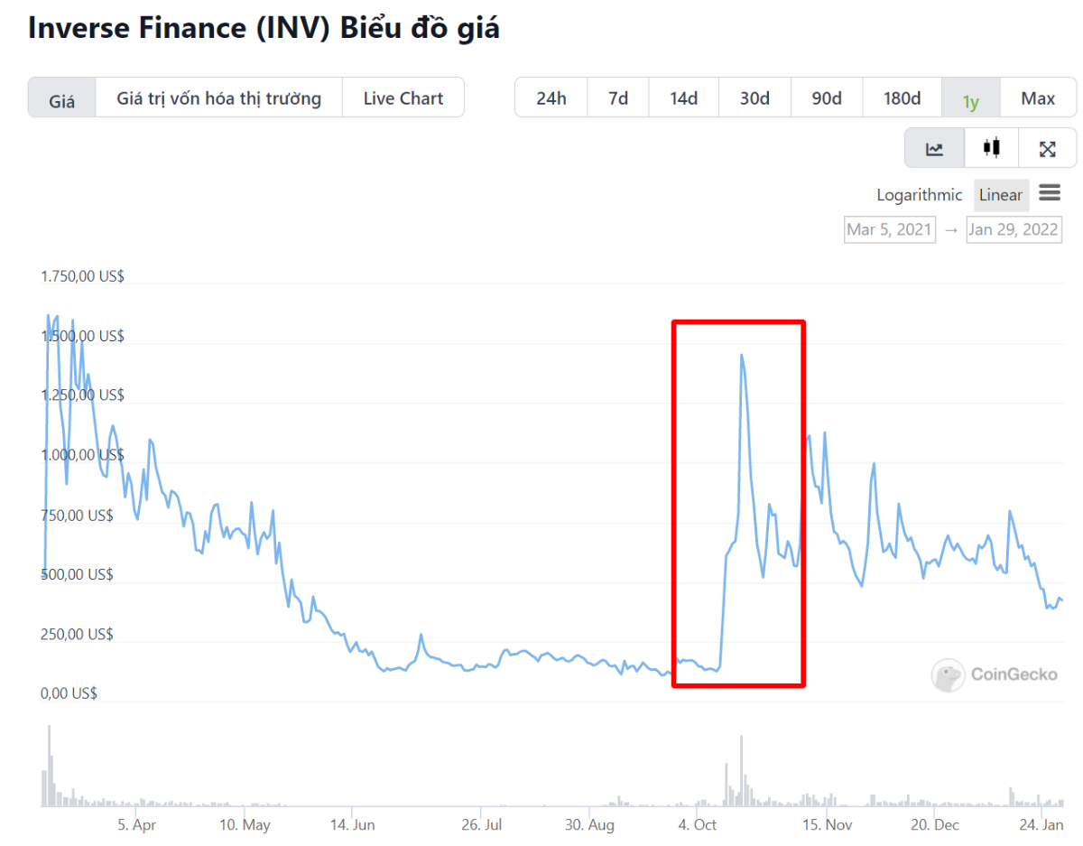 Giá INV lúc đó bật tăng mạnh, lên tới hơn $1,500, kéo theo đó là những thay đổi tích cực như TVL trên Inverse tăng, số stablecoin DOLA được mint ra nhiều hơn.