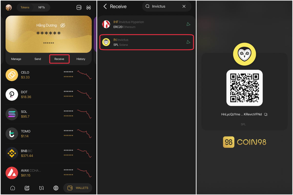 IN token là SPL token, bạn có thể lưu trữ trên Coin98 Wallet với thao tác đơn giản sau: