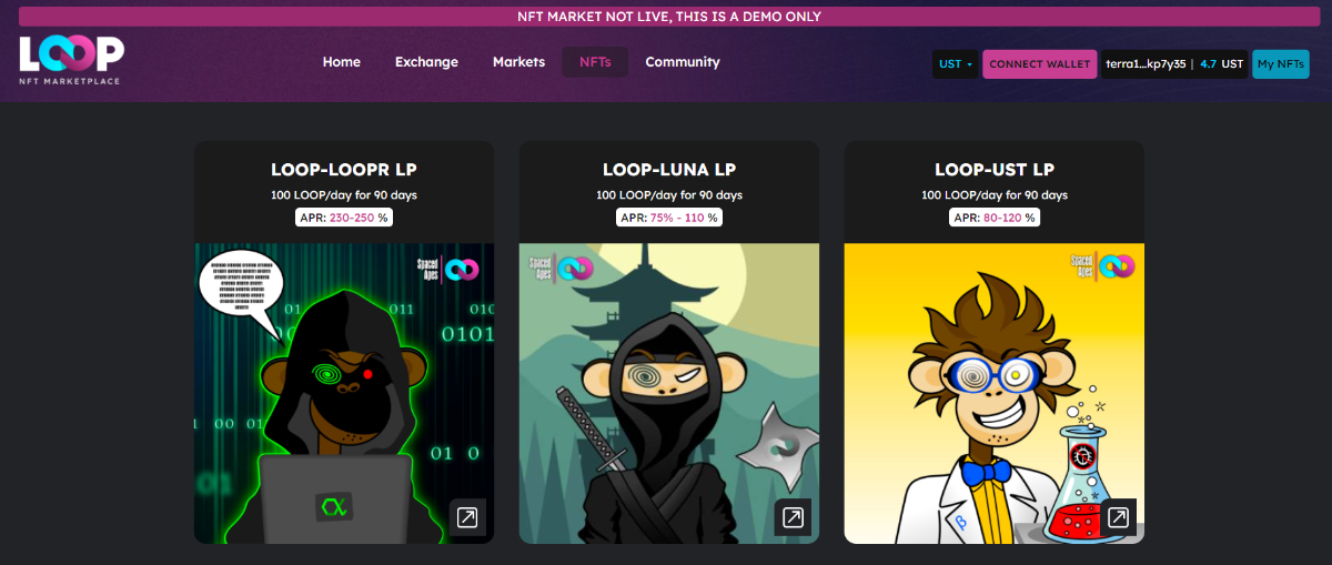 NFTs are illiquid and have almost no use case. Loop Markets stands out to be a pioneering player to integrate an on-platform NFT marketplace and create an NFT collectible. It will implement NFTs in a way that empowers NFTs with more utilities for collectors. However, at the moment, Loop NFT Marketplace is in the demo stage, not officially launched.