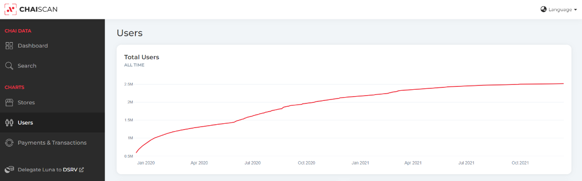 - Chai, a payment app, delivers UST applications to mass adoption in South Korea - the homeland of Terra and UST. It reached millions of users. As depicted in the graph, the number of new users is gradually increasing over time, which is about 2.5M users in South Korea. The Koreans are adopting the new blockchain-based stablecoin.