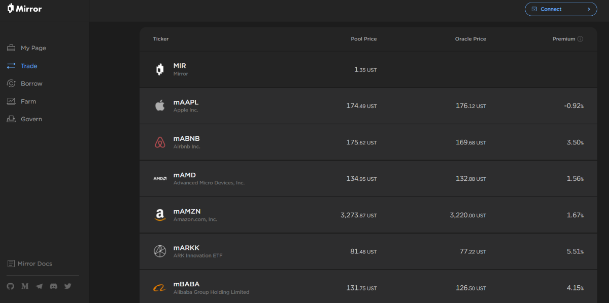 - Mirror Protocol - synthetic asset protocol.