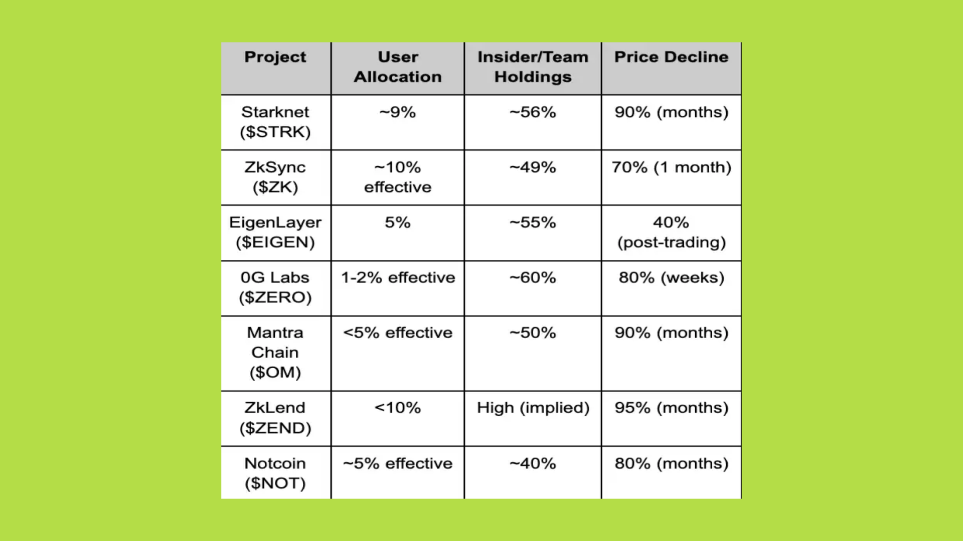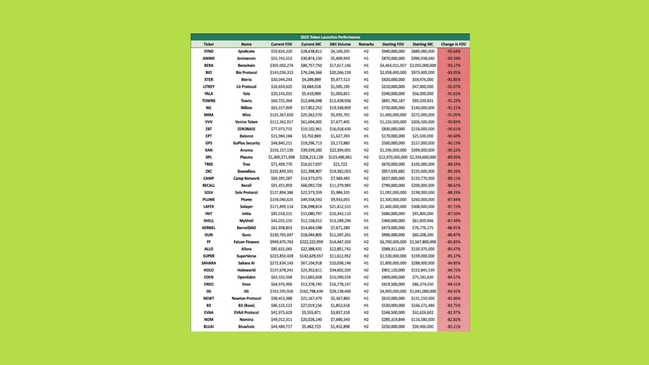 Áp lực bán tháo ngay khi có thanh khoản đã làm xói mòn uy tín dự án bất chấp chất lượng sản phẩm, minh chứng qua việc các tên tuổi lớn như Berachain hay Syndicate giảm hơn 93% giá trị sau niêm yết.
