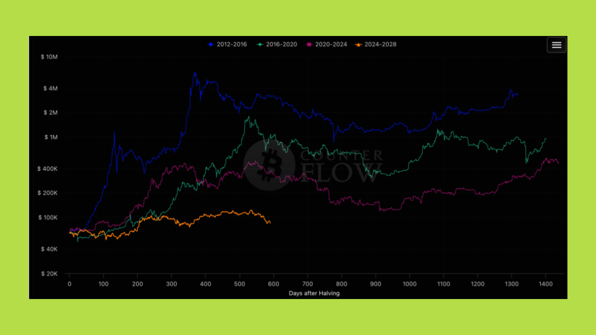 Nhóm quan điểm đầu tiên giữ vững lập trường rằng thị trường tài sản mã hoá vẫn vận hành chặt chẽ theo chu kỳ 4 năm, với sự kiện Bitcoin Halving là kim chỉ nam bất biến. Theo lăng kính này, bất chấp sự tham gia của các dòng vốn mới, các mô hình tâm lý thị trường về lòng tham và nỗi sợ hãi vẫn có xu hướng lặp lại.
