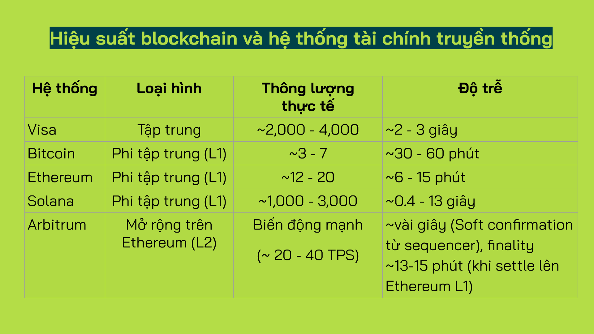 So sánh hiệu suất blockchain và hệ thống tài chính truyền thống