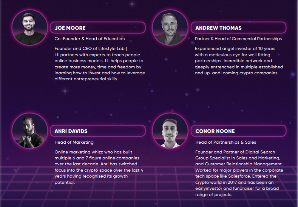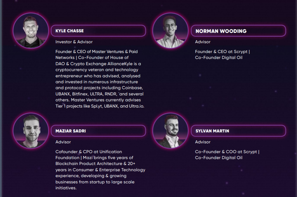 Bên cạnh Kyle Chasse, một cái tên quen thuộc đã cố vấn cho rất nhiều dự án thì những cái tên nổi bật khác có thể kể tới như Norman Wooding hay Sylvan Martin, những nhà điều hành của Scrypt - một công ty Fintech chuyên cung cấp các dịch vụ tài chính cho nhóm đối tượng là các quỹ đầu tư có tổ chức.