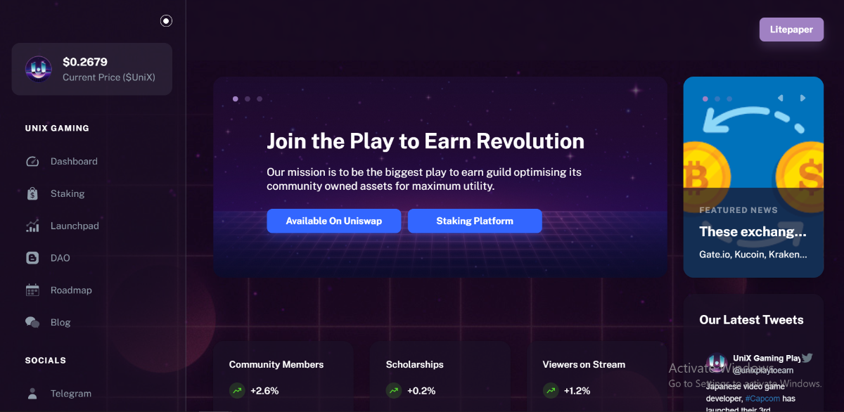 Unix Gaming là một gaming guild tập trung vào mảng game Play-to-Earn và thế giới ảo Metaverse. Dự án này chuyên đầu tư vào GameFi và các tài sản NFT liên quan.